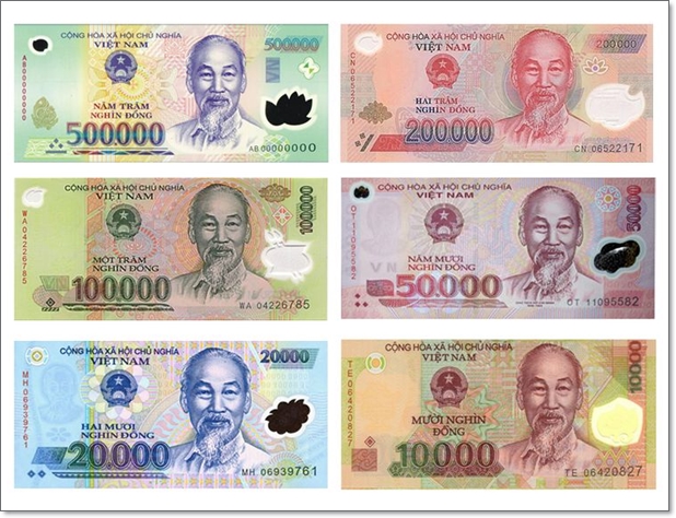 앞에서 말씀드린 것처럼 베트남의 화폐 규모는 매우 큽니다. 그래서 지폐 종류가 12개나 됩니다. 다행히 동전은 잘 사용되지 않기 때문에 지폐만 알고 계시면 됩니다.