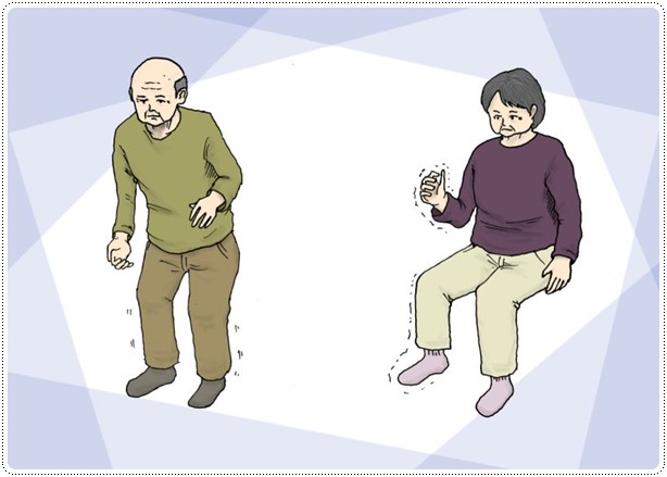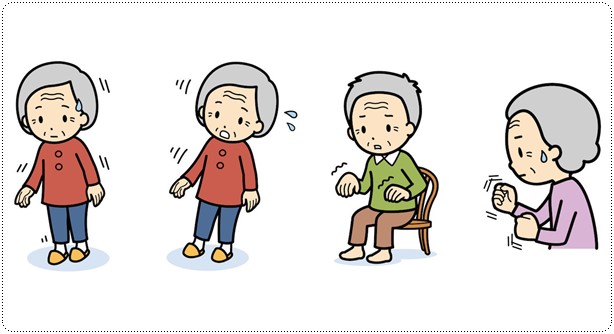 - 손떨림 - 주로 손에서 시작되며, 대부분 한쪽 손에서 두드러짐